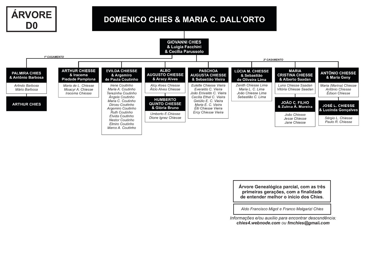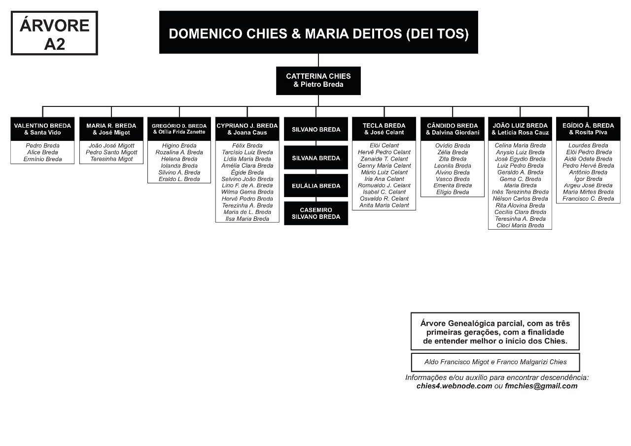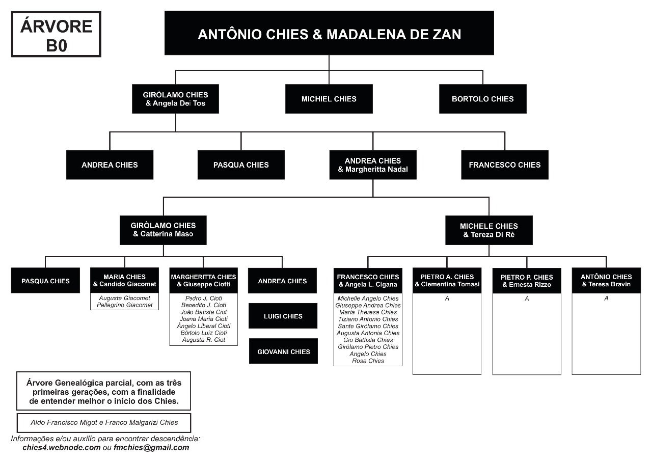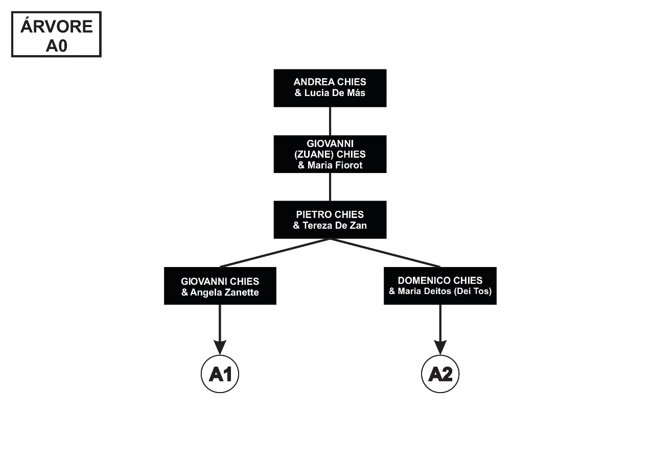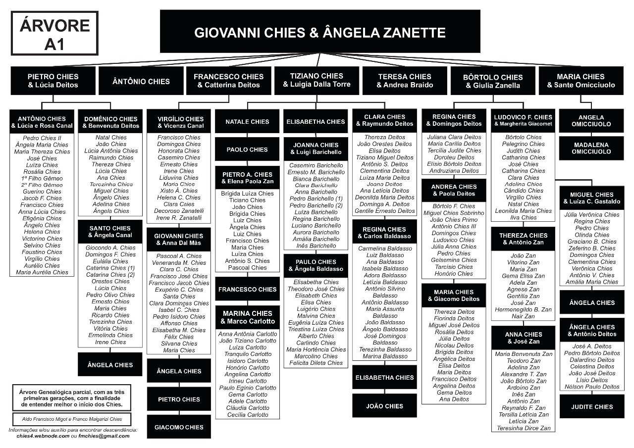 Confira abaixo as árvores genealógicas com os ramos de Chies que vieram para o Brasil, entre 1879 e 1923.